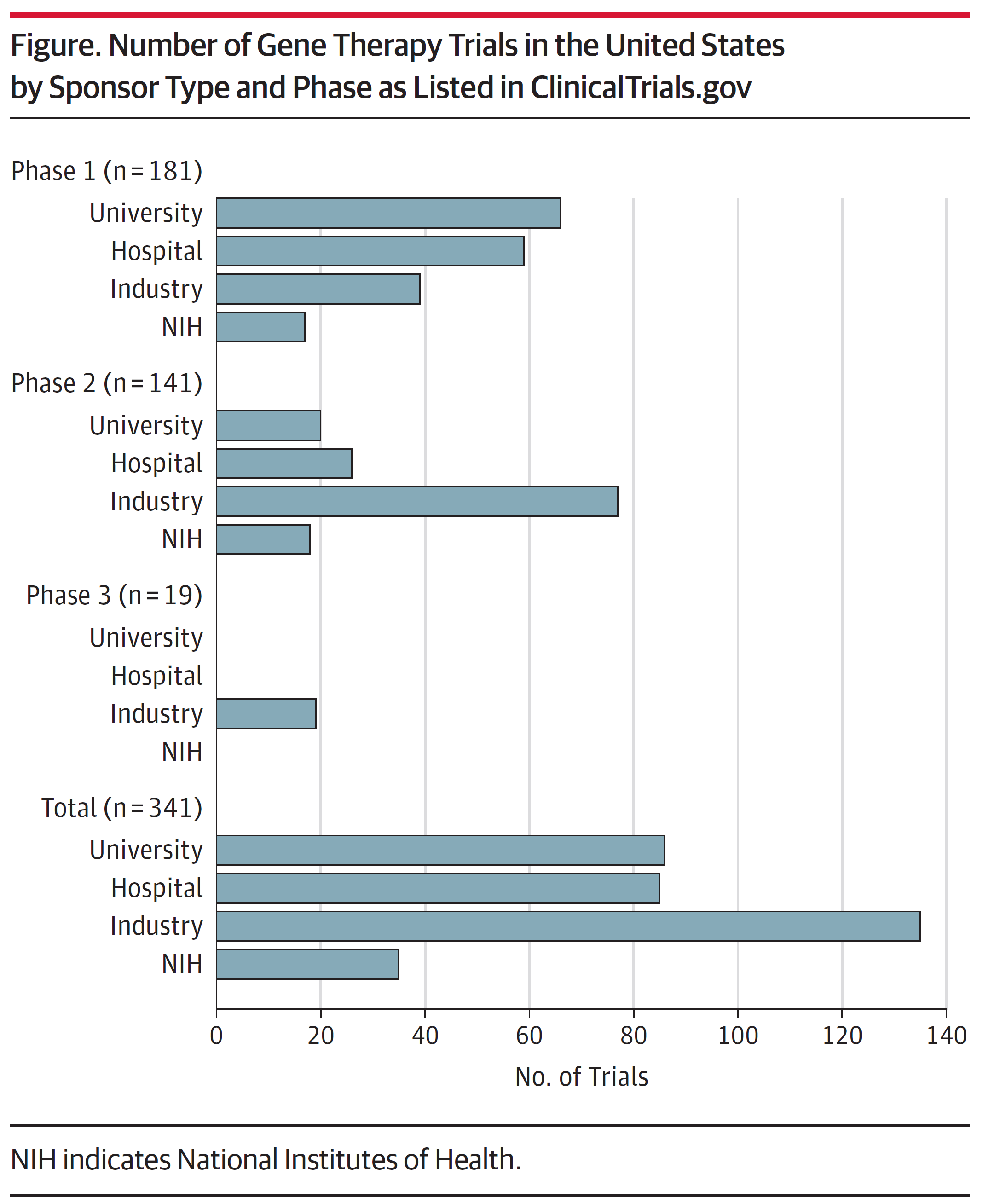 作者收集了临床试验的治疗手段、分期情况、治疗情况、参与者、赞助者和资助者。赞助商取最主要位置的唯一值、资助者定义为作为赞助者或合作者的任何实体,包括任何提供资金或支持的实体。为了关注近期进展的美国基因治疗临床试验,作者排除了2019年1月前结束的临床试验,排除被终止的、退出或暂停状态的试验;排除发生在美国以外的临床试验。