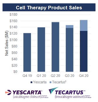 Gilead/Kite目前拥有两款获得FDA审批上市的CAR-T细胞治疗药物,Yescarta与Tecartus。