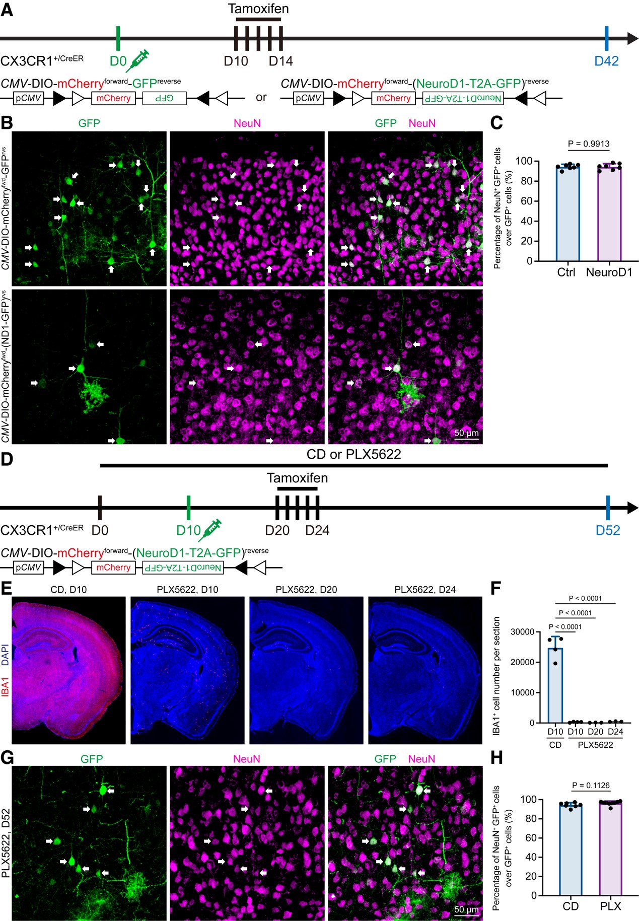 8.Rao, Y. et al. NeuroD1 induces microglial apoptosis and cannot induce microglia-to-neuron cross-lineage reprogramming. Neuron 109 (2021).