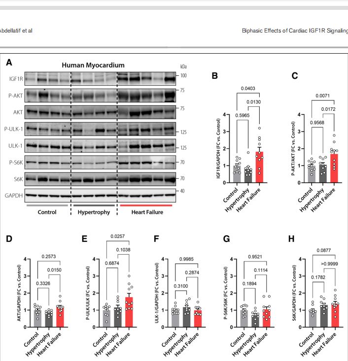 终末期自然衰竭的人类心脏显示出IGF1R极高的表达水平和信号活性