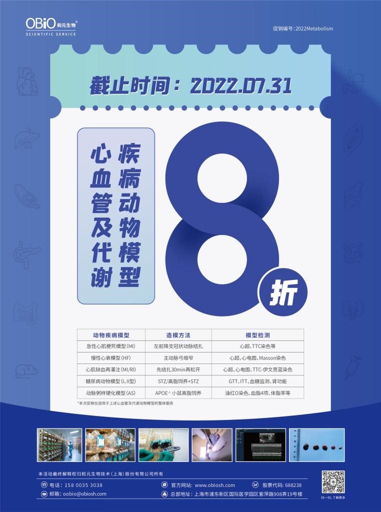 心血管及代谢疾病动物模型整体实验8折优惠!复工复产强心针!