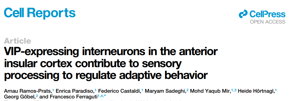 大家好,这里是只想咕咕的椰球。刚刚过去的6•18购物节中相信大家都有不少收获吧,今天带来的研究是5月刚刚发表在Cell Reports上的一篇环路相关的工作。论文的标题为前岛叶皮层中的VIP中间神经元通过影响感觉信息处理调控适应性行为。本文的主要作者均来自奥地利的因斯布鲁克医科大学。