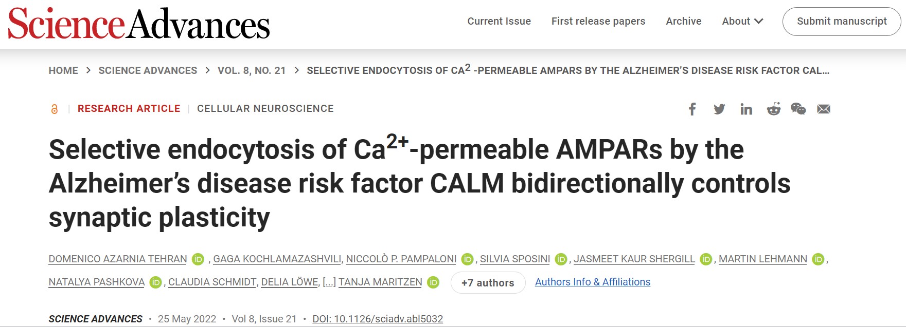 Sci Adv. | 阿尔兹海默症风险因子CLAM介导CP-AMPAR内吞机制双向调控突触可塑性