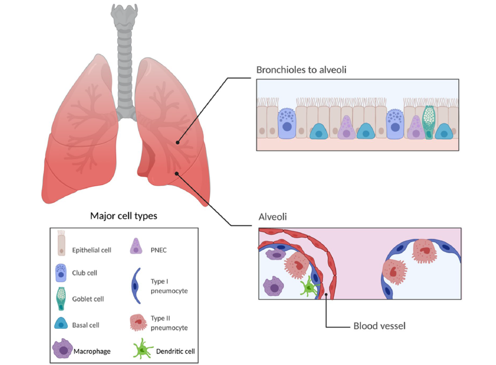 肺脏(Lung)是哺乳动物呼吸系统中最重要的器官,其主要功能是将氧气送入血液,并将二氧化碳排出体外,除呼吸调节功能外、肺脏还承载着防疫、免疫、肺循环、造血等多种重要的功能。肺脏包括支气管、小(细)支气管、肺泡管和肺泡,肺泡是支气管树的终末部分,是肺部气体交换的主要部分,也是肺的功能单位。