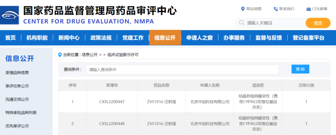 2022年12月6日,中因科技/北京大学第三医院自主研发的ZVS101e注射液临床试验申请(IND)获得国家药品监督管理局药品审评中心(CDE)默示许可。ZVS101e是治疗由CYP4V2基因突变所致的结晶样视网膜变性(Bietti’s Crystalline Dystrophy,BCD)患者的基因替代疗法药物,目前世界范围内尚未批准针对BCD的治疗方法上市。至尊国际·(中国)至尊服务,至尊享受