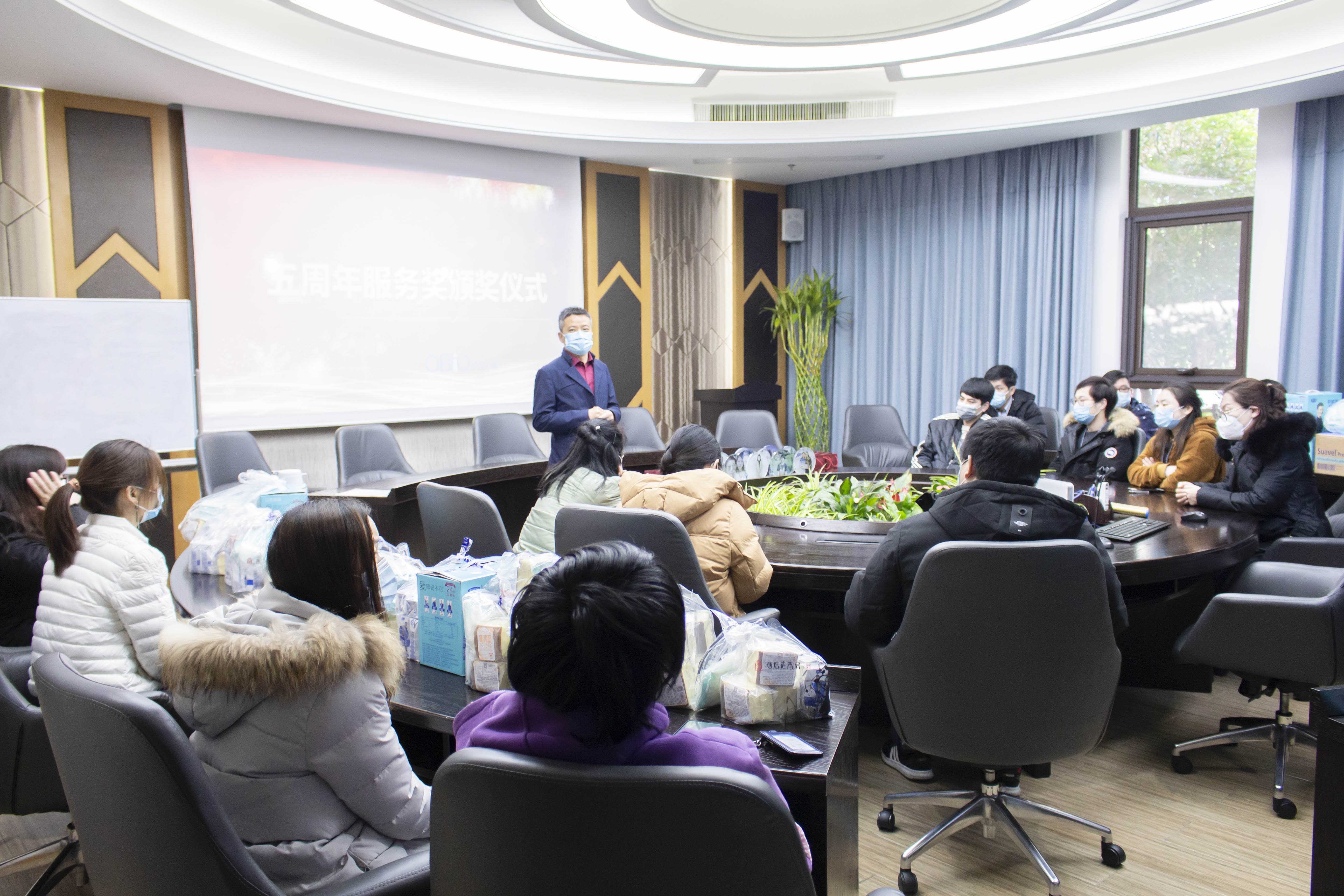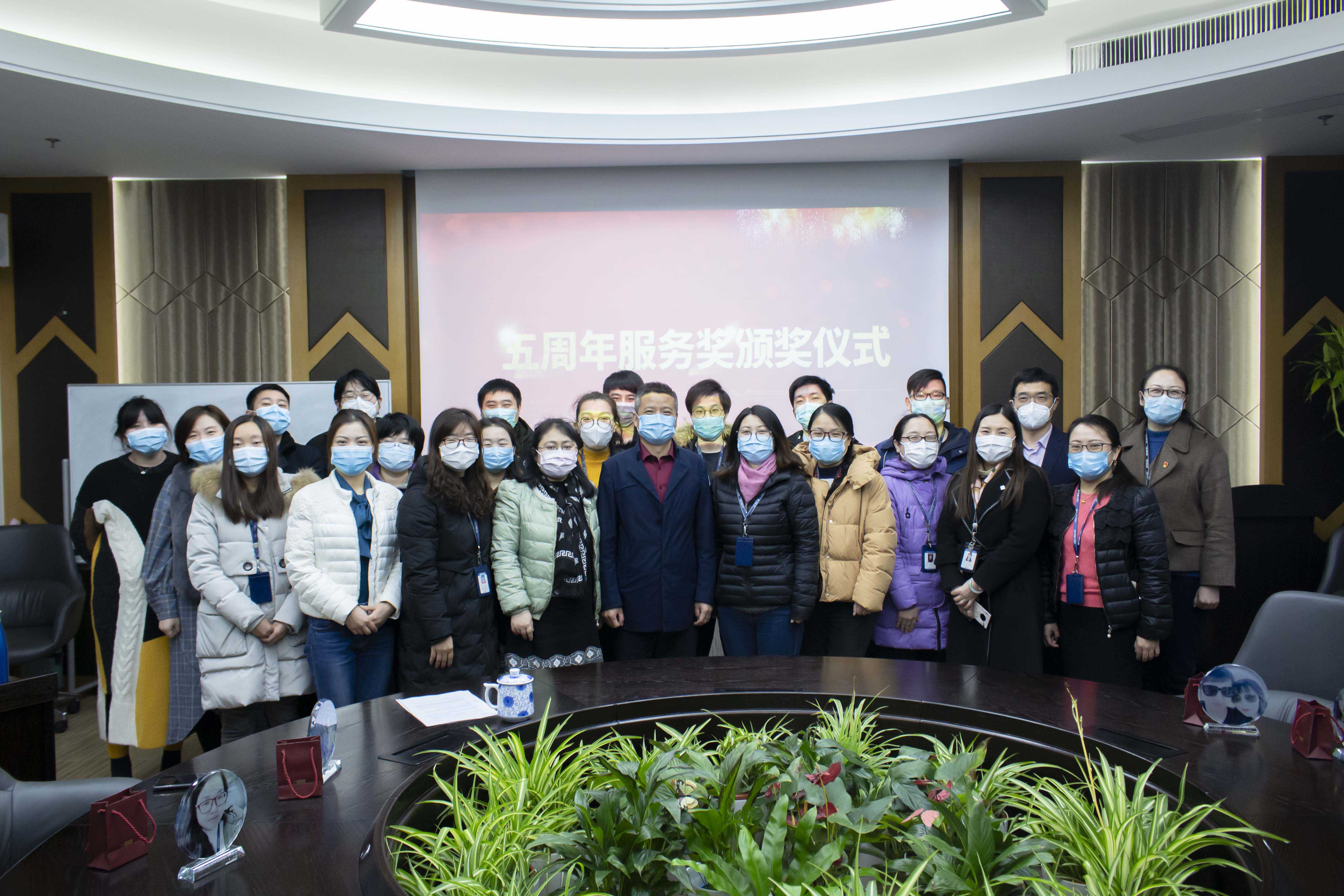 今天,公司里有五年工龄的员工聚在一起。