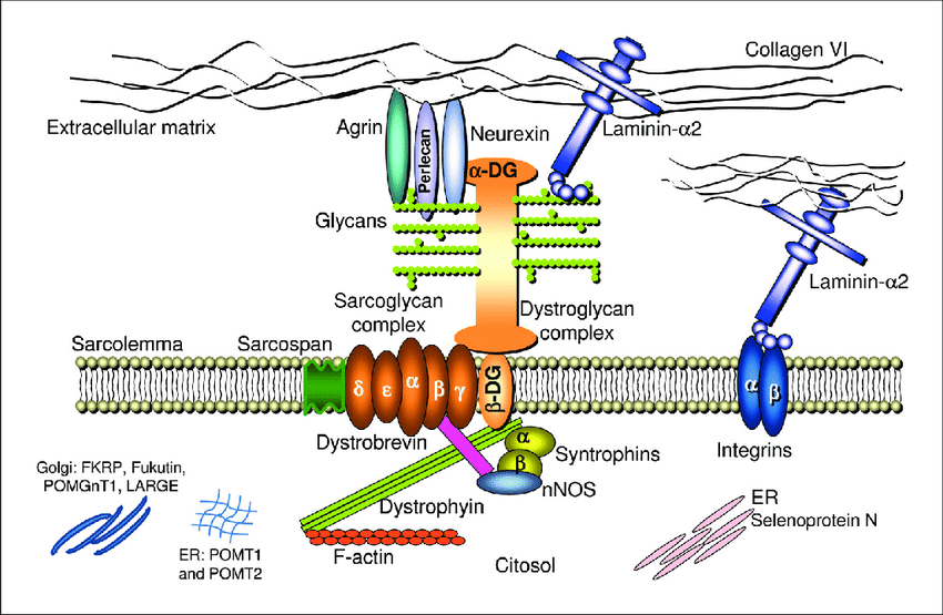 Laminins蛋白是细胞外基质的一种蛋白,它通过与其他蛋白结合来维持肌肉纤维的稳定性,因而该蛋白的缺失或功能紊乱会导致肌肉纤维的病变,即LAMA2 MD。与LAMA2相关的肌营养不良(LAMA2 MD,也称为MDC1A)是CMD最常见的形式之一,它是由编码Laminin-211蛋白alpha2亚基的LAMA2基因突变引起的。大多数LAMA2 MD患者表现为完全缺乏laminin-alpha2,出生时肌张力减退,不能行走,最终死于呼吸并发症。