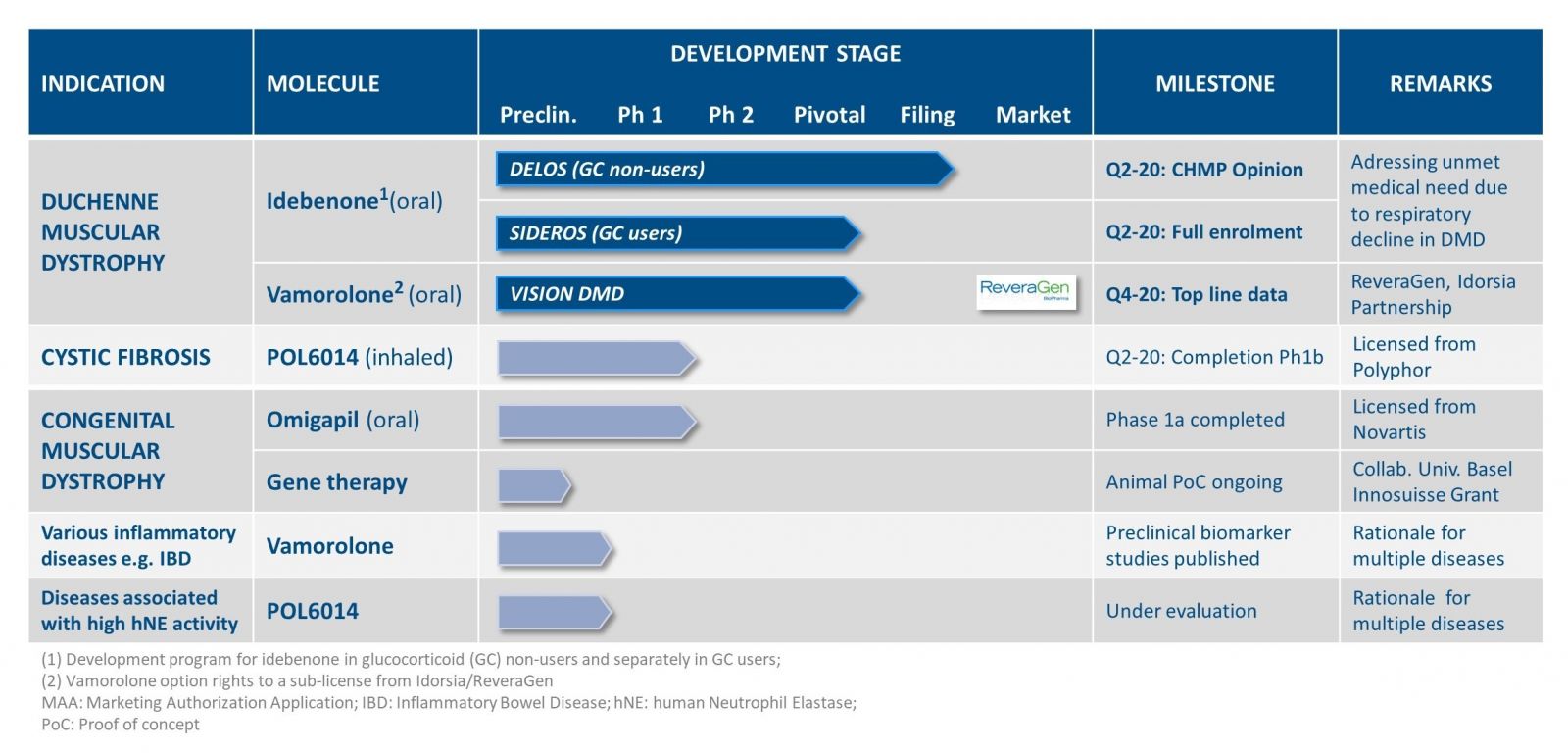 2018年11月,Santhera从Idorsia获得用于治疗杜氏肌营养不良症(DMD)的2期临床在研药物vamorolone的全球研发许可(除日本和韩国以外)。Vamorolone是一种“first-in-class”创新类固醇药物,它有潜力成为治疗DMD年轻患者的标准类固醇疗法。